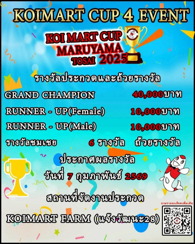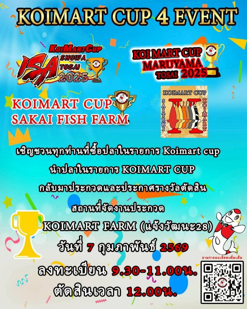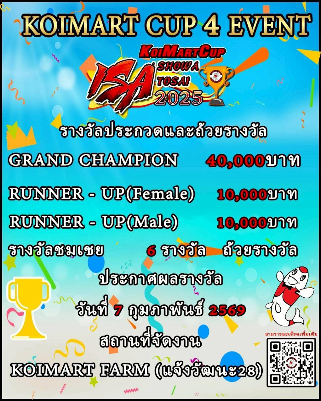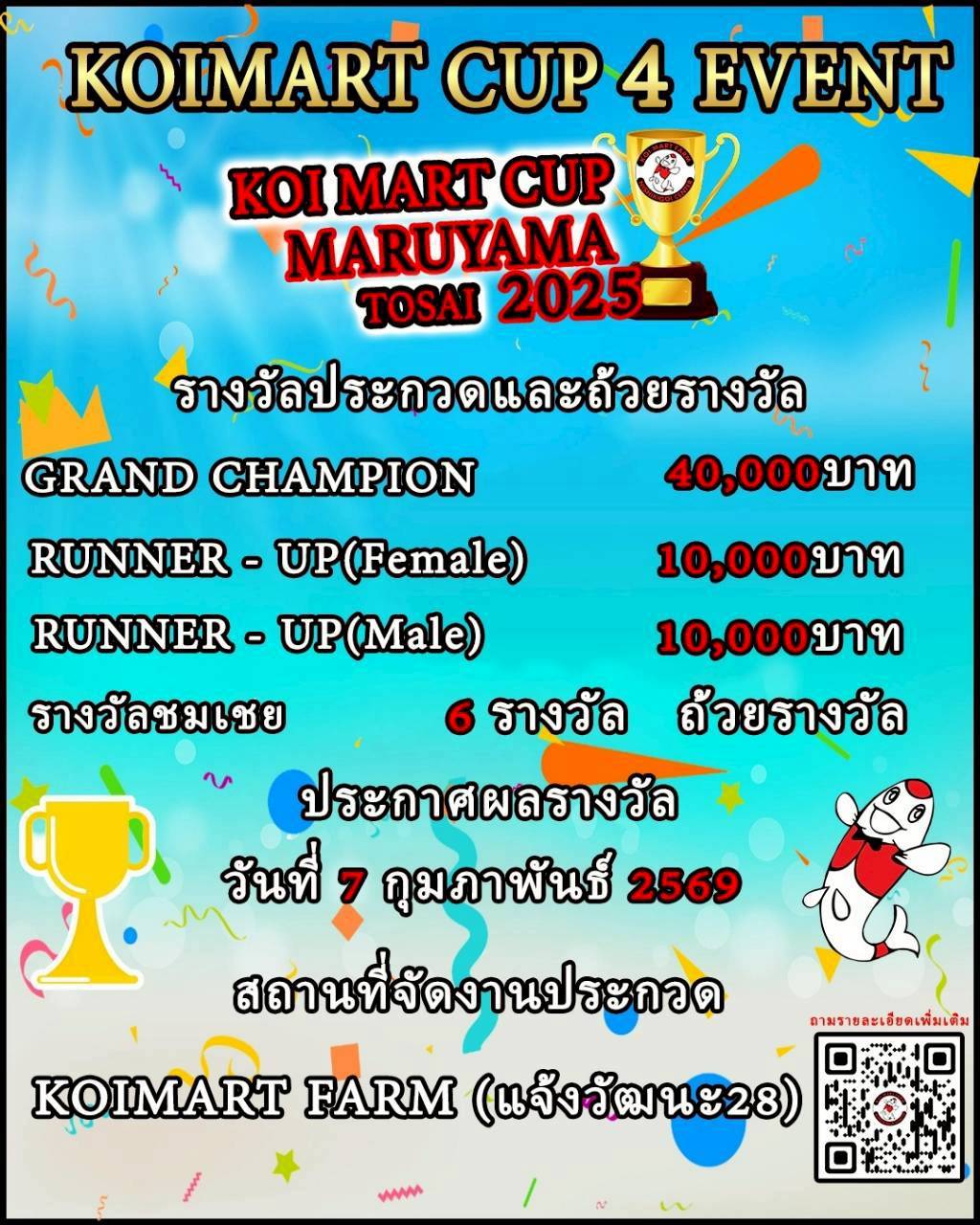 Koimart Cup 4 Event เชิญชวนทุกท่านที่ซื้อปลาในรายการ KOIMART CUP กลับมาประกวดและประกาศรางวัลตัดสิน
